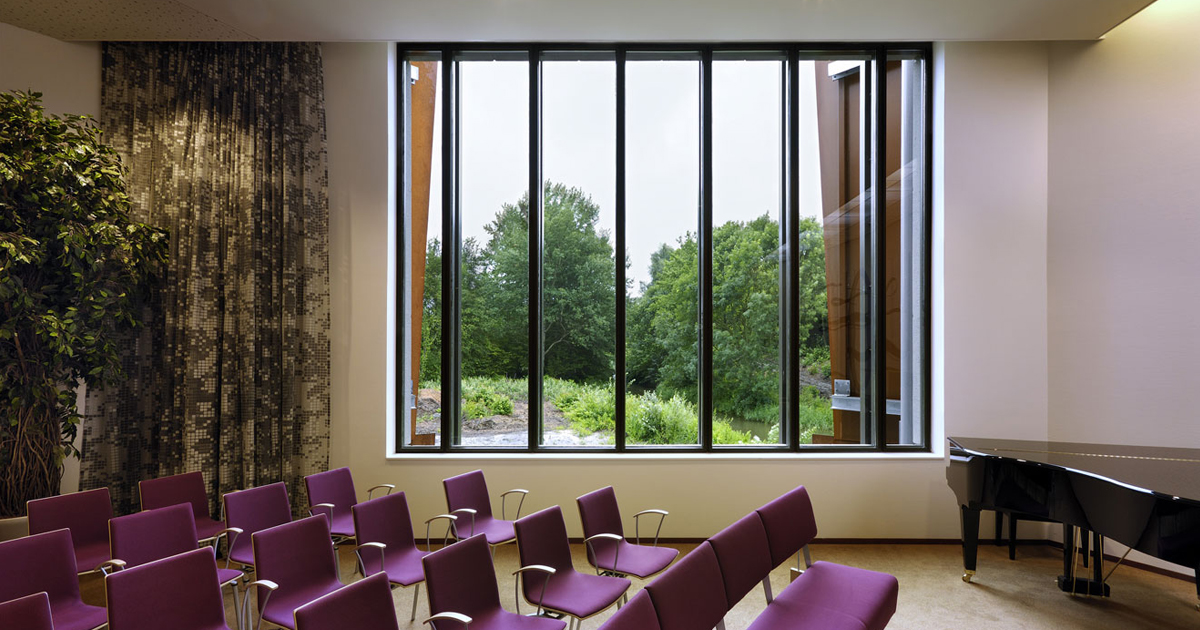 Crematorium Meerbloemhof is een onverkorte uitwerking van het ontwerp waarmee wij in 2000 een besloten prijsvraag wonnen. De inbedding van het ontwerp in het landschap geeft de geborgenheid die wenselijk is bij een uitvaart, zonder dat het introvert wordt.