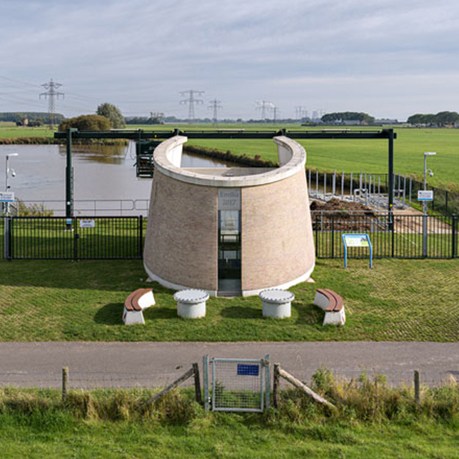 Wij lieten ons inspireren door de weerbaarheid en robuustheid van de oude Hollandse vestingwerken. Het ontwerp omvat elementen zoals voeten in het water, rondgangen en overzichtsplaatsen. Om een kostbare dijkverhoging in het gebied van de Schermerboezem te vermijden, is bij Schardam een gemaal aangelegd. Dit gemaal kan bij gevaarlijk hoge waterstanden het overtollige water uit 220 polders snel afvoeren naar het Markermeer.