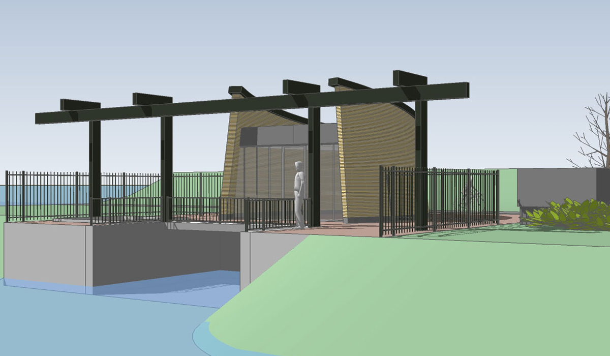 Architect Miel Karthaus: “Het nieuwe gemaal krijgt een landschappelijke inpassing. Dat hebben we tot uitdrukking gebracht door een rond gemaal te ontwerpen in plaats van een rechthoekig gebouw. Het gemaal is ontworpen met kenmerken van de nog bestaande watermolen uit de 19e eeuw”.
